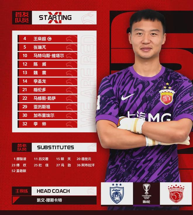 上海海港首发:4-王燊超、5-张琳芃、10-马特乌斯·维塔尔、12-陈威、13-魏震、14-李圣龙、21-梅伦多、22-马修斯·茹萨、29-亚历斯祖、30-加布里埃尔、32-李帅